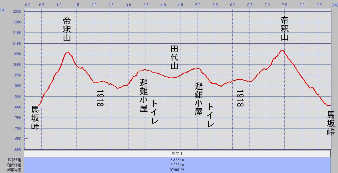 | 9:20-35 | 馬坂峠 1790m | 1806 | 峠は広い駐車場になっていて、新設されたトイレがあった 登山口から急勾配の木製階段が続く、周りはコメツガ、オオシラビソの針葉樹帯帯に覆われたいた |