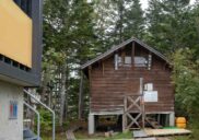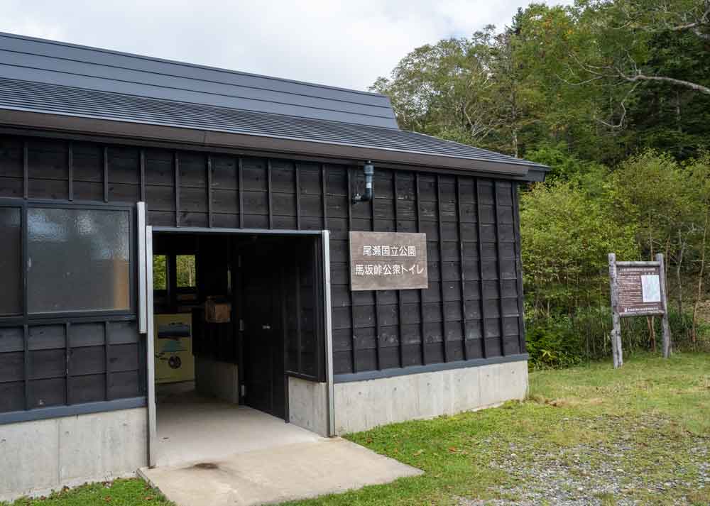 緩やかな登りの先に現われた避難小屋とトイレ、どちらも二階にあった
