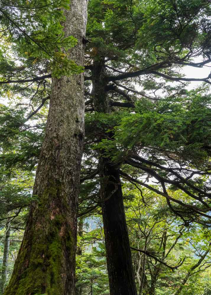 森林生態系保護地域のおかげで、コメツガ、オオシビソ、ヒメコマツ、ダケカンバなどの大木が手つかずに残されている