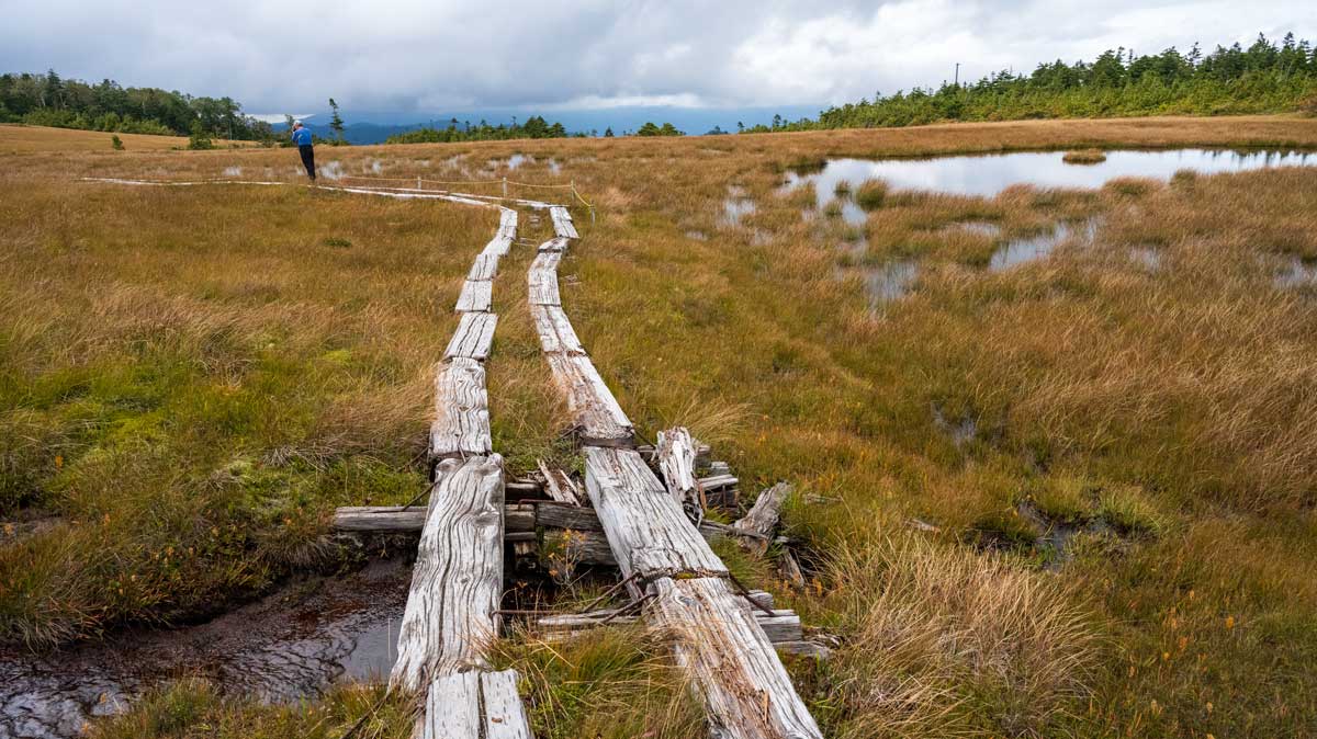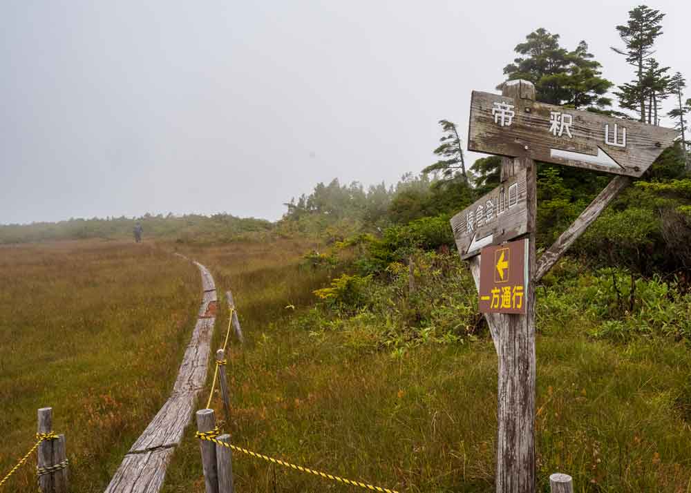 | 10:50-11:00 | 帝釈山山頂 2060m | 2055 | 二等三角点があるここから那須・日光・尾瀬・越後三山などの展望を期待したが、一切見えず 猿倉登山口から登ってきた埼玉の人とともに田代湿原に向かう 稜線の岩場のギャップに新しい梯子が据えられ、その先に二人の方が階段の整備をしていた、感謝!感謝! |