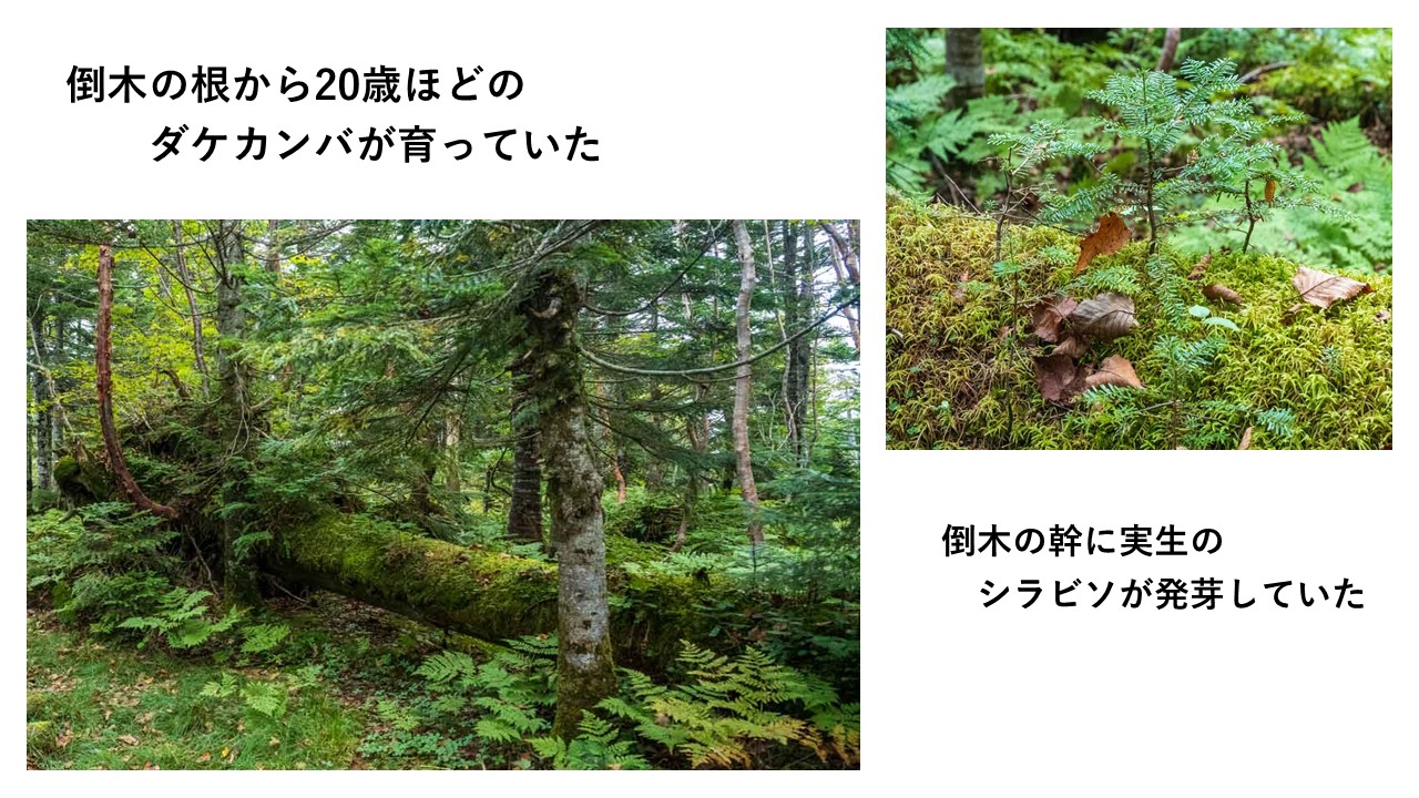 田代山への縦走路の1,918地点の先に倒木更新の姿をみた
